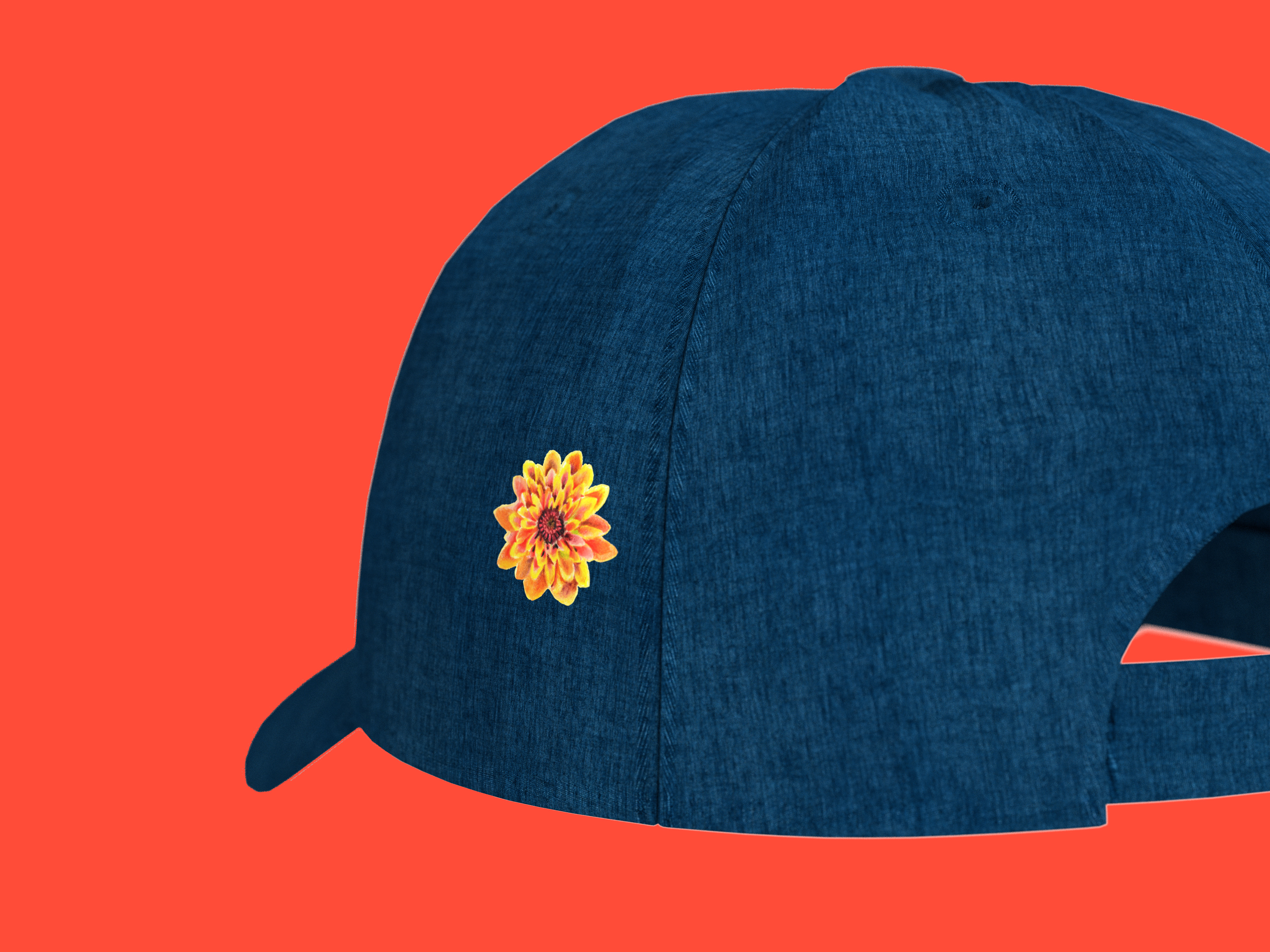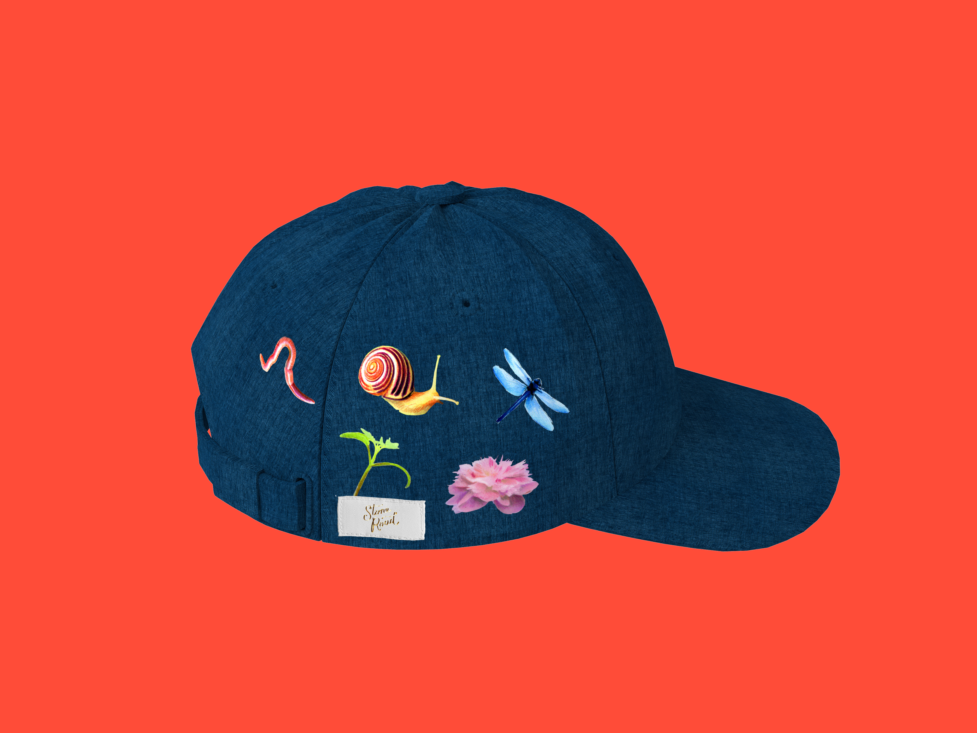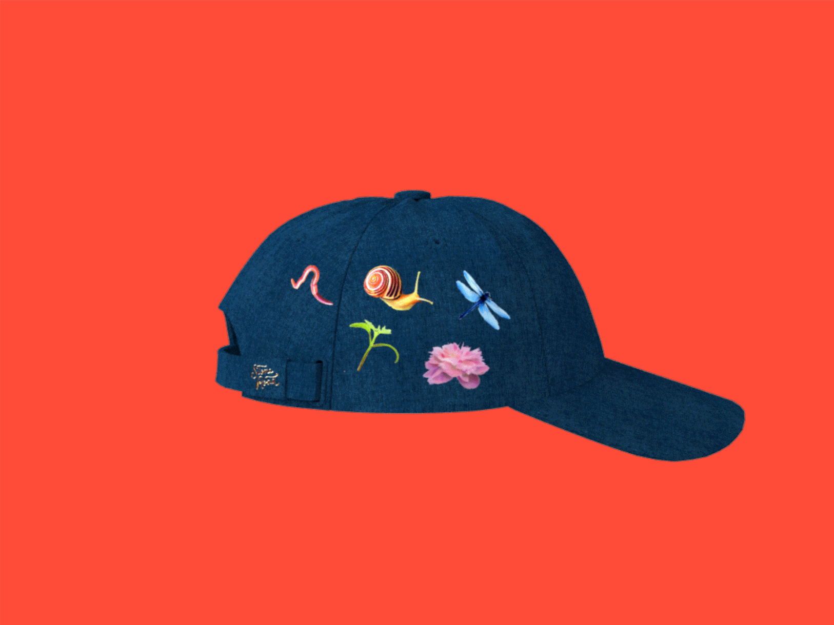 Hello. This is a bucket hat. It’s stylish and can keep the sun out of your eyes. Now in blue!